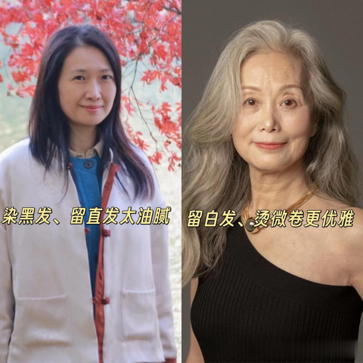 中年女人还不能留直发,头发太直,容易暴露发量稀疏的问题,还会贴头皮,建议可以烫成蓬松的微卷发,保留白发也好美。